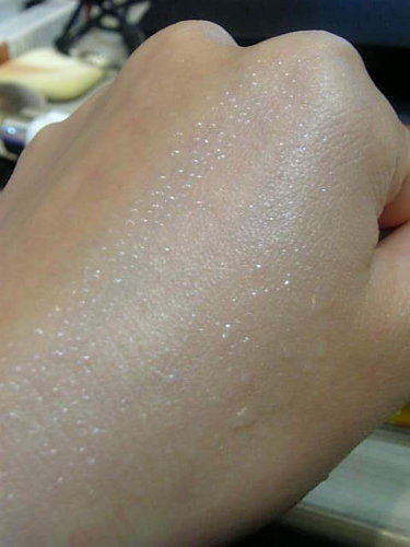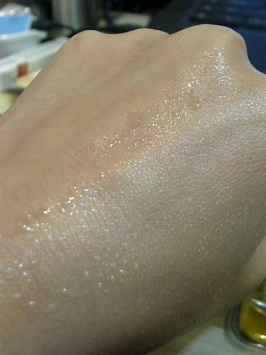 均勻的塗抹在手上後可以明顯感覺到肌膚會變得比較白皙&亮澤!