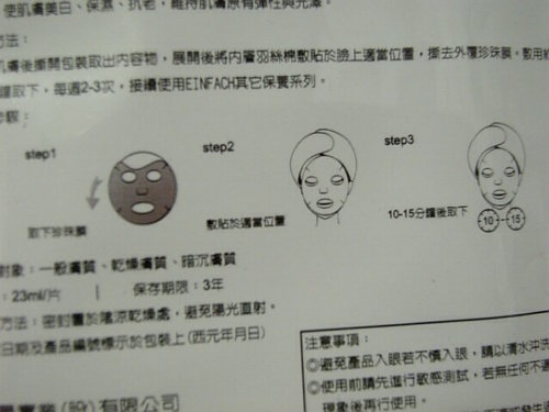 這是我第一次用到這麼薄的面膜布, 很好貼(不取下珍珠隔離紙), 而且也很服貼臉 邊邊角角都能顧到(除了鼻翼)