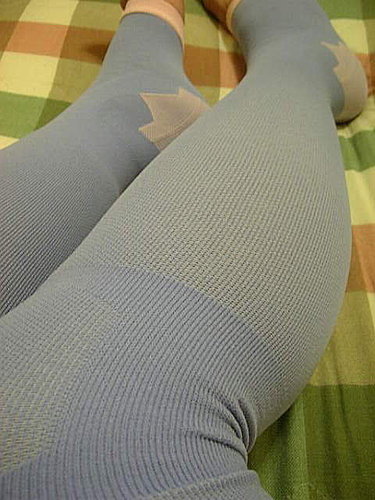 大腿粉紅色的束口不知道是因為我蠕動的身軀讓他捲起來, 還是腿太粗的關係!!! 總之, 早上醒來(半夢半醒時) 時發現粉紅色束口是捲起來像蛋捲那樣的狀態!