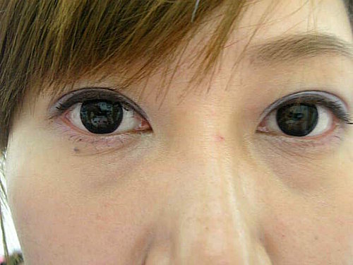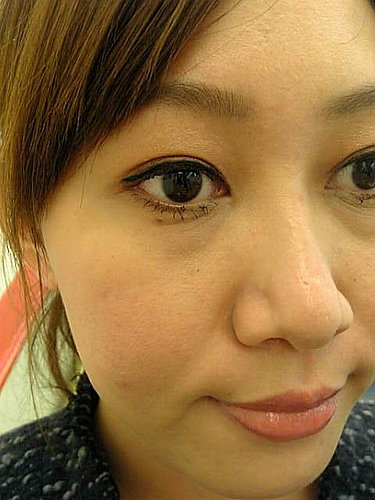 下圖示2/27 彩妝會的時候, 彩妝師化的. 眼線液 & 睫毛膏都是用 棕色 的, 眼影選擇 紫色系列! (我對紫色果然還是沒辦法接受) 今天的妝不怎麼愛, 我也不太愛拍 就先這樣啦!