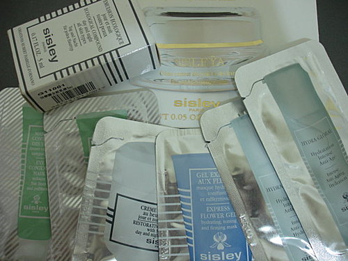 這次旅行前, 在Sisley 偶遇以前認識的BA, 她知道我要去北海道, 就給了我下圖這麼多的試用包~ (超開心的, 全能乳液是回國後拿到的)