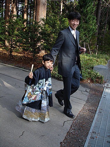 11月到隔年的3月是日本小孩安太歲的季節, 逢3逢5逢7歲, 都得到神宮安一下太歲! (上突穿的很帥的小男孩是5歲喔)