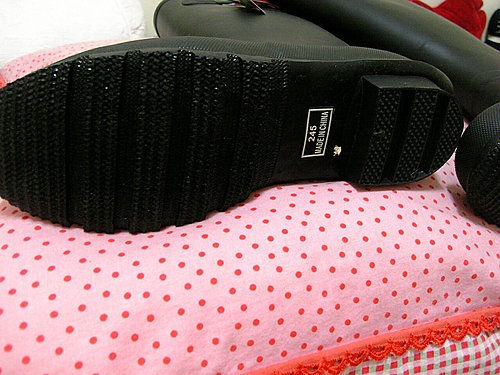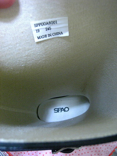 靴子的內襯是鋪棉的, 還不賴~ 鞋底印刷大大的SPAO 字樣, 另外, 鞋墊也是可以拿出來清洗晒乾除臭的喔~