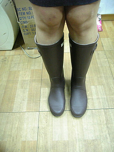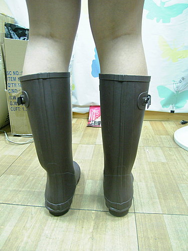 這雙雨靴看起來真的不像是塑膠雨靴, 遠看會以為是真皮的靴子呢~ 因為是霧面效果, 所以不會有塑膠雨靴那樣假假的感覺~ 我個人蠻喜歡的~