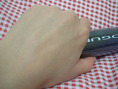 除了晚餐吃素外, 白天的定妝效果也很不賴~ 我幫我的手上了厚厚一層的隔離+飾底+粉餅後, 噴了大量的AQUAKEY~~~ 這次的噴霧非常的細, 幾乎呈現霧狀(我記得我上次買的時候還會有露珠呢)