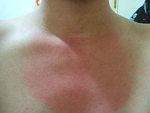 接下來是悲慘的實驗~本人週末參加小學生的校慶+園遊會, 在烈日下曝曬的結果.......如下圖(絕無露點)
