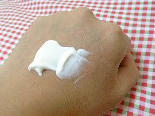 乳液質地, 敷完馬上會有啵兒亮的感覺, 淡淡的玫瑰草香味, 很舒服! 喔~ 面膜可不能用按摩的方式擦喔, 因為會有白削削產生, 所以我都單方向的橫擦. 順著肌膚的紋理輕輕的敷上去然後就去睡了!