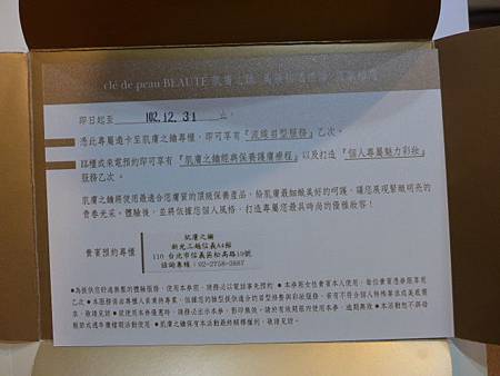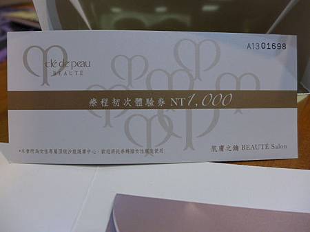 除了領取一份基礎保養外, 還有一張可以折抵1000元的禮券, 是用來折抵臉部護膚的療程!