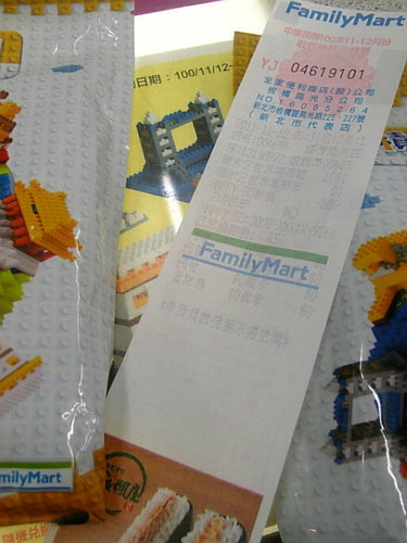 這次全家太貼心了 跟happy go 大發善心來著, 只要扣除happy go 點數200點, 就可以直接兌換一組積木 我好開心阿
