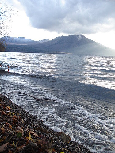 第一天的北海道行就是去登別 (上圖為支笏湖), 遠處的山已經看的到白雪....但是....我就是摸不到啦~